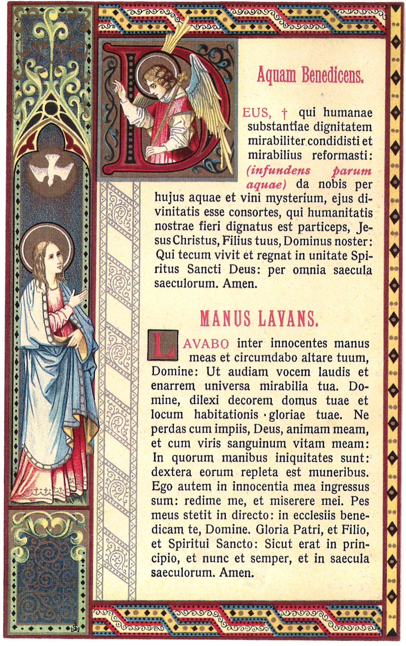 如果說日課是陽光,彌撒就是太陽,是教會最重要的禮儀。在彌撒前,人們可以通過誦讀聖詠,來為參與聖祭善做準備。在彌撒中,教會也用聖詠來表達不同禮儀部分中恰當的情感。在彌撒結束後,人們也以聖詠表達對天主的感恩。這篇網誌收錄了由中國作家若望·吳經熊(John Ching Hsiung Wu, 1899~1986)以中華古詩詞形式翻譯的,在彌撒常用經文中及彌撒前後所用的聖詠,來供大家鑑賞。
