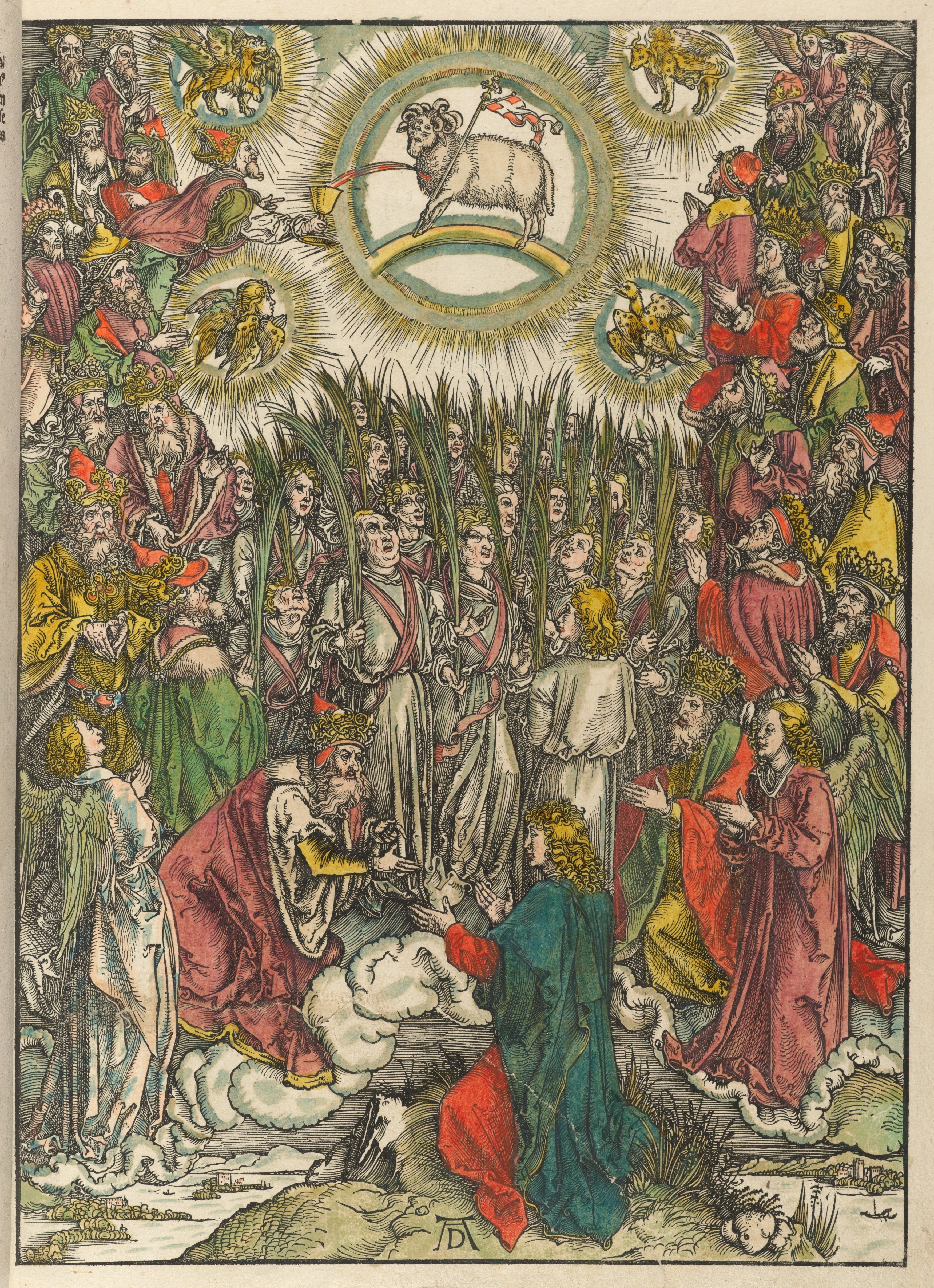 The book sealed with seven seals is opened by the Lamb, who thereupon receives adoration and praise from all.