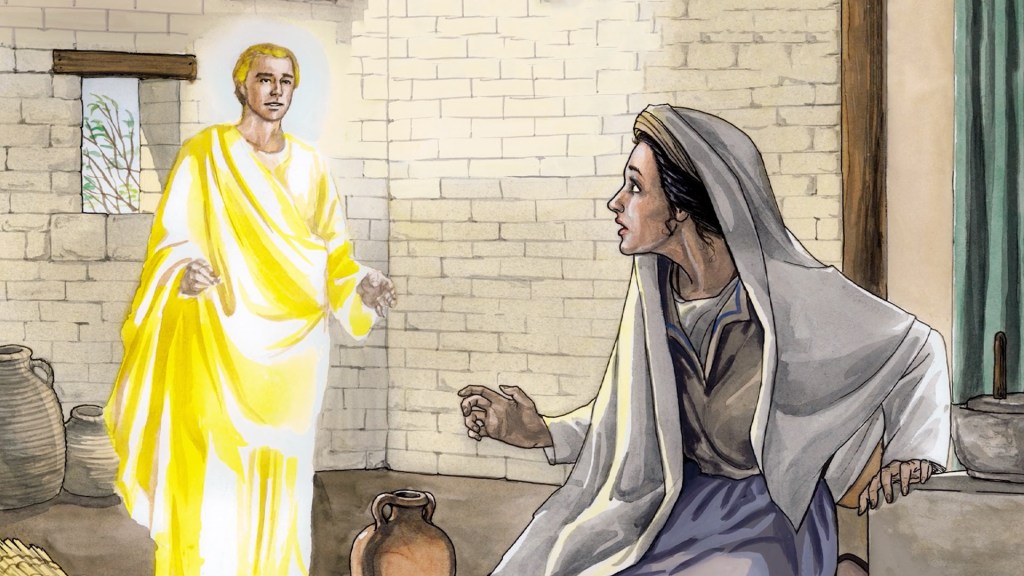 And in the sixth month, the angel Gabriel was sent from God into a city of Galilee, called Nazareth, 27 To a virgin espoused to a man whose name was Joseph, of the house of David; and the virgin’s name was Mary. 28 And the angel being come in, said unto her: Hail, full of grace, the Lord is with thee: blessed art thou among women. 29 Who having heard, was troubled at his saying, and thought with herself what manner of salutation this should be. 30 And the angel said to her: Fear not, Mary, for thou hast found grace with God. 31 Behold thou shalt conceive in thy womb, and shalt bring forth a son; and thou shalt call his name Jesus. 32 He shall be great, and shall be called the Son of the Most High; and the Lord God shall give unto him the throne of David his father; and he shall reign in the house of Jacob for ever. 33 And of his kingdom there shall be no end.