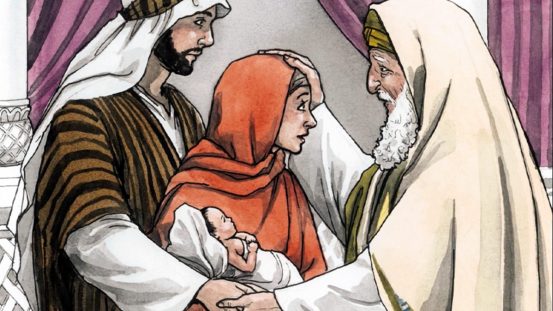 And after eight days were accomplished, that the child should be circumcised, his name was called JESUS, which was called by the angel, before he was conceived in the womb. 22 And after the days of her purification, according to the law of Moses, were accomplished, they carried him to Jerusalem, to present him to the Lord: 23 As it is written in the law of the Lord: Every male opening the womb shall be called holy to the Lord: 24 And to offer a sacrifice, according as it is written in the law of the Lord, a pair of turtledoves, or two young pigeons: 25 And behold there was a man in Jerusalem named Simeon, and this man was just and devout, waiting for the consolation of Israel; And the Holy Ghost was in him. 26 And he had received an answer from the Holy Ghost, that he should not see death, before he had seen the Christ of the Lord. 27 And he came by the Spirit into the temple. And when his parents brought in the child Jesus, to do for him according to the custom of the law, 28 He also took him into his arms, and blessed God, and said: