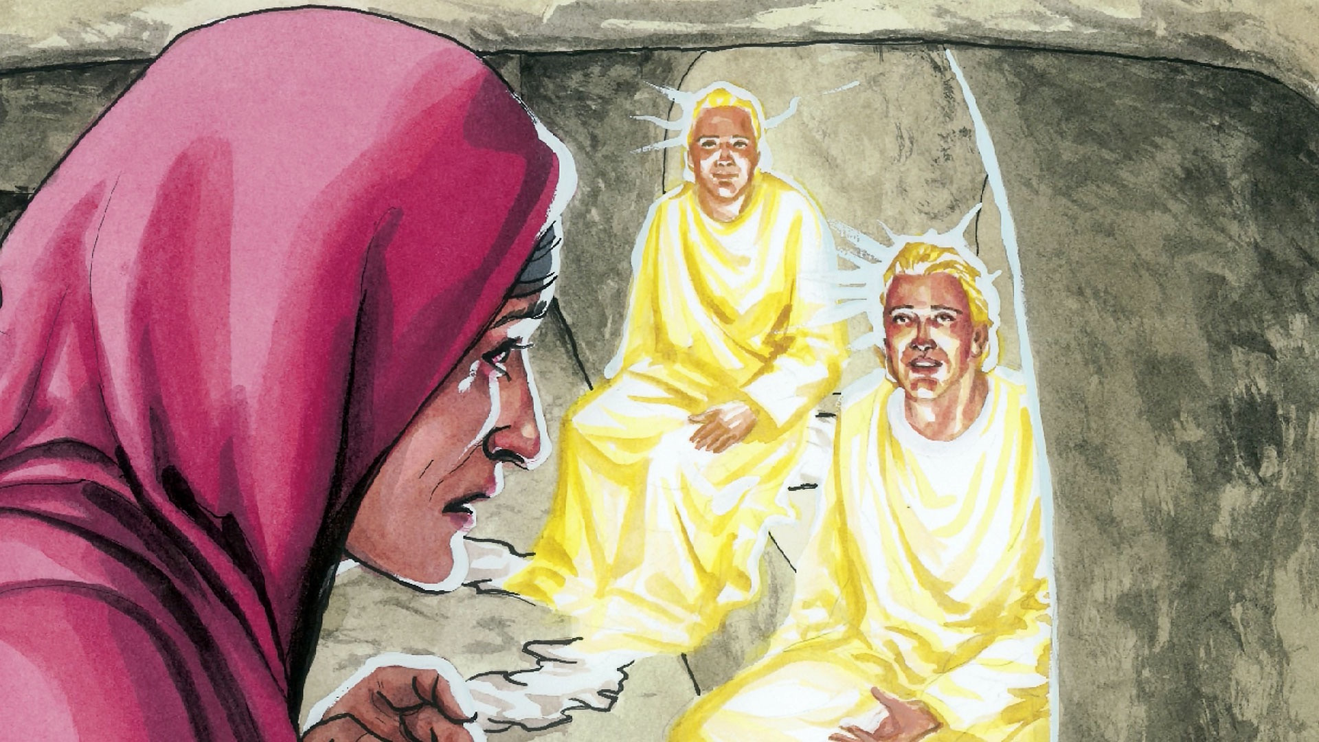 11 But Mary stood at the sepulchre without, weeping. Now as she was weeping, she stooped down, and looked into the sepulchre, 12 And she saw two angels in white, sitting, one at the head, and one at the feet, where the body of Jesus had been laid. 13 They say to her: Woman, why weepest thou? She saith to them: Because they have taken away my Lord; and I know not where they have laid him. 14 When she had thus said, she turned herself back, and saw Jesus standing; and she knew not that it was Jesus. 15 Jesus saith to her: Woman, why weepest thou? Whom seekest thou? She, thinking that it was the gardener, saith to him: Sir, if thou hast taken him hence, tell me where thou hast laid him, and I will take him away. 16 Jesus saith to her: Mary. She turning, saith to him: Rabboni (which is to say, Master). 17 Jesus saith to her: Do not touch me, for I am not yet ascended to my Father. But go to my brethren, and say to them: I ascend to my Father and to your Father, to my God and to your God. 18 Mary Magdalen cometh, and telleth the disciples: I have seen the Lord, and these things he said to me.
